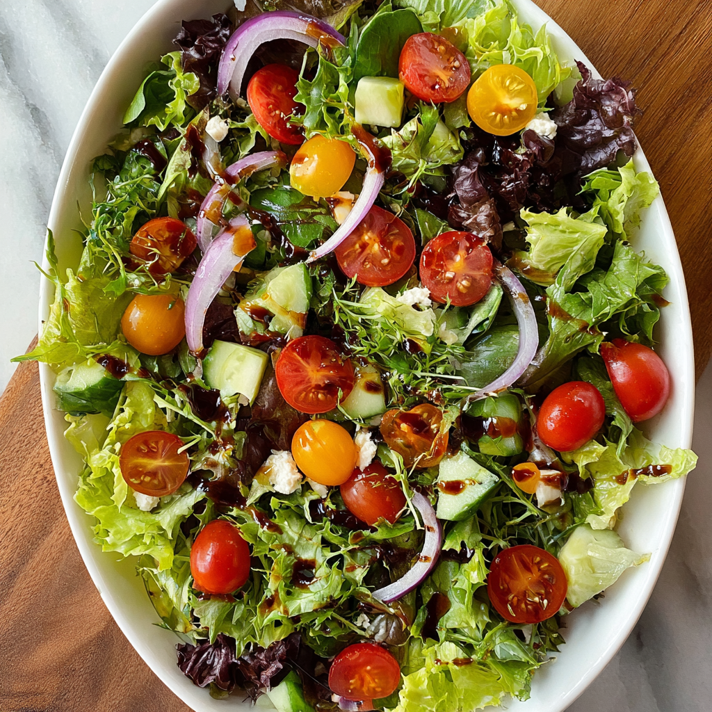This Best Simple Side Salad with Easy Balsamic Vinaigrette is fresh, crisp, and quick to prepare. With vibrant vegetables and a tangy homemade dressing, it complements almost any meal. Try the recipe, share your feedback in our review section, leave a comment on our blog, and subscribe for more delicious updates.