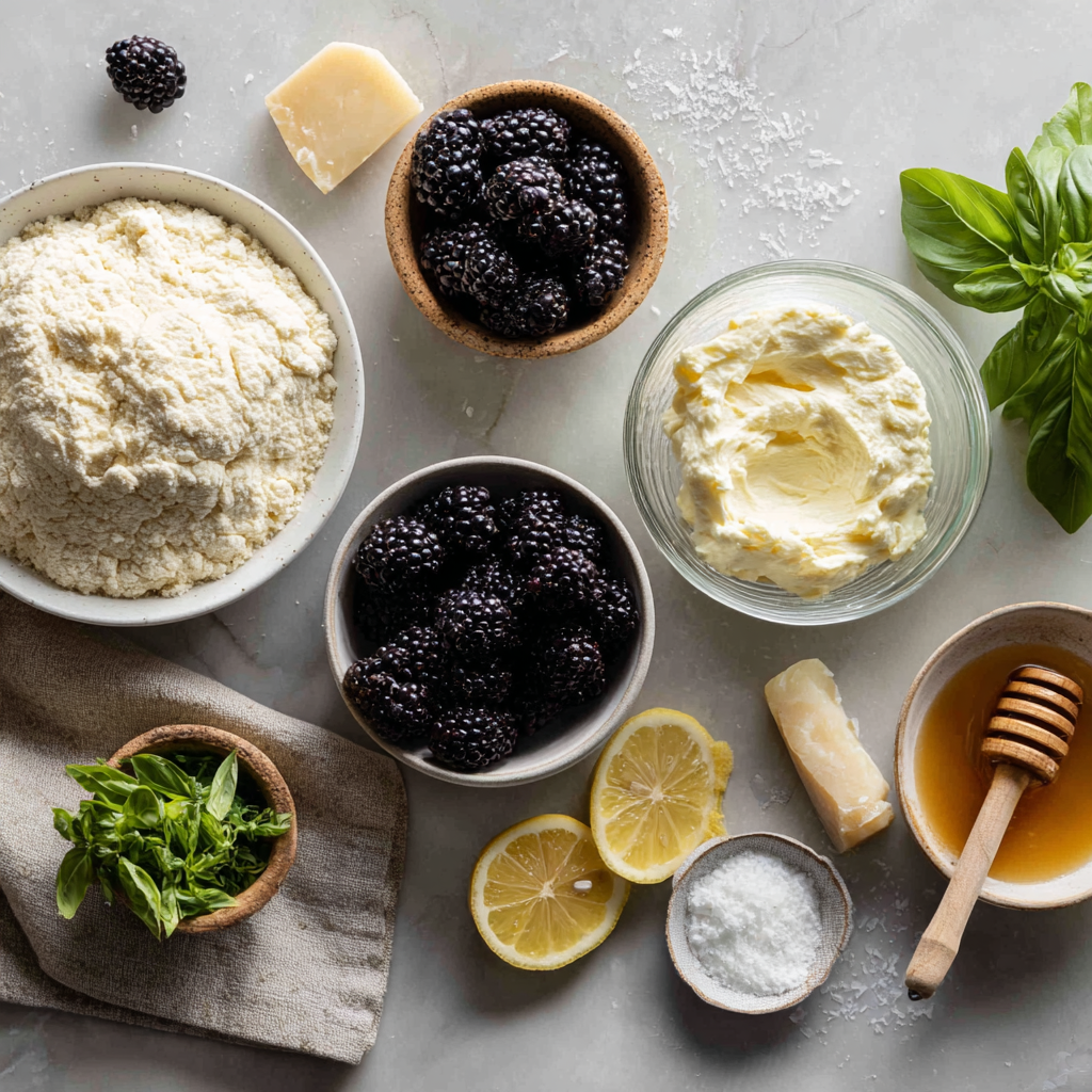 - The Fruit: Scatter the blackberries around the ricotta dollops.