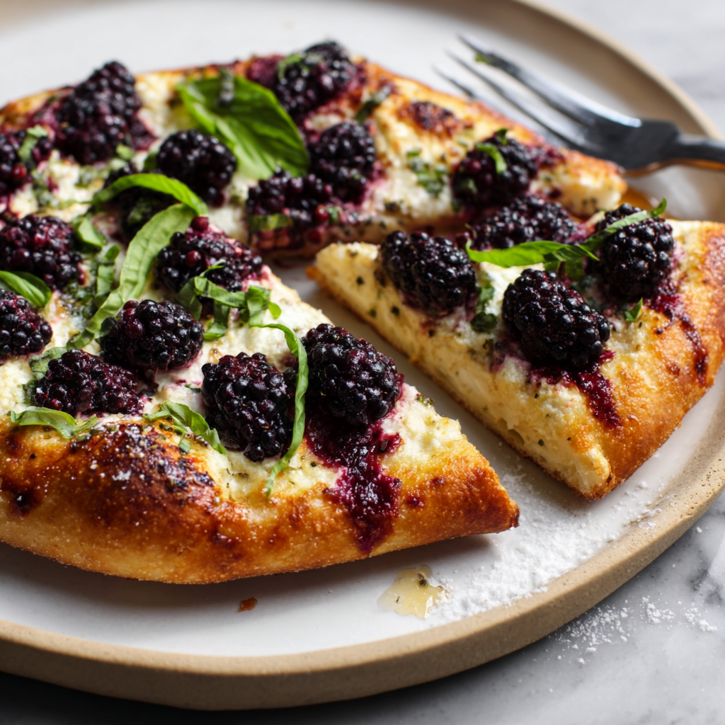Data Insight: Blackberries are one of the highest fiber fruits (approx. 8g per cup). Combining this fiber with the fat in the ricotta helps blunt the glycemic spike from the pizza dough crust.