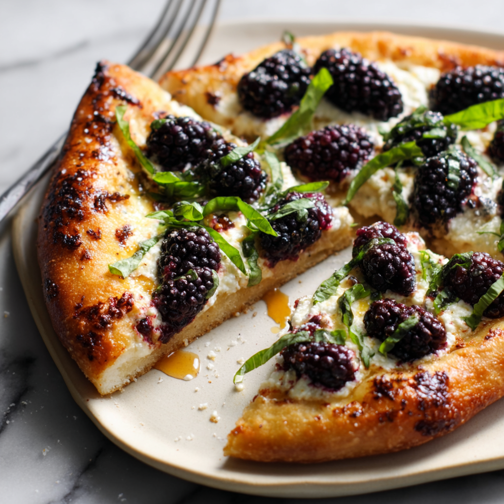 Blackberry Basil Ricotta Pizza is a revelation for the adventurous eater. It proves that pizza doesn’t need tomato sauce to be delicious. By harnessing the contrast between creamy dairy, tart fruit, and sweet honey, you create a slice that feels light, summery, and incredibly refined.