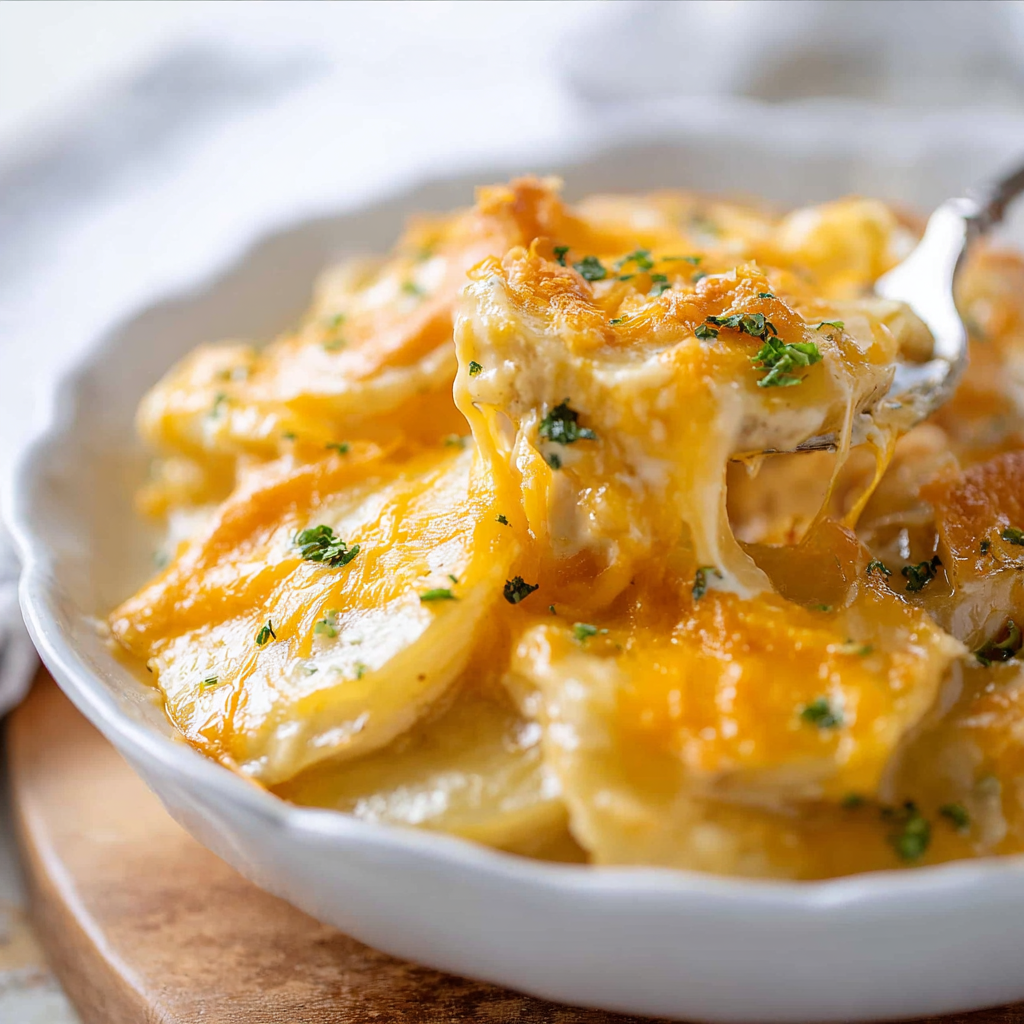 Cheesy Crockpot Scalloped Potatoes are a creamy, comforting side dish made effortlessly in your slow cooker. With rich cheese layers and tender potatoes, this recipe is perfect for any occasion. Try it today, share your feedback in the comments, and subscribe for more delicious recipes and updates!
