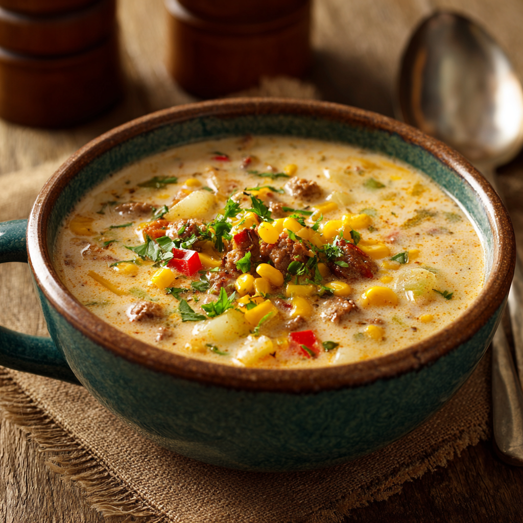 Looking for a Creamy Cowboy Soup recipe that’s rich, hearty, and guaranteed to warm you from the inside out? You’re in the right place. This comforting, flavor-packed soup blends seasoned ground beef, tender potatoes, sweet corn, beans, and a luxuriously creamy broth into one satisfying bowl of goodness.