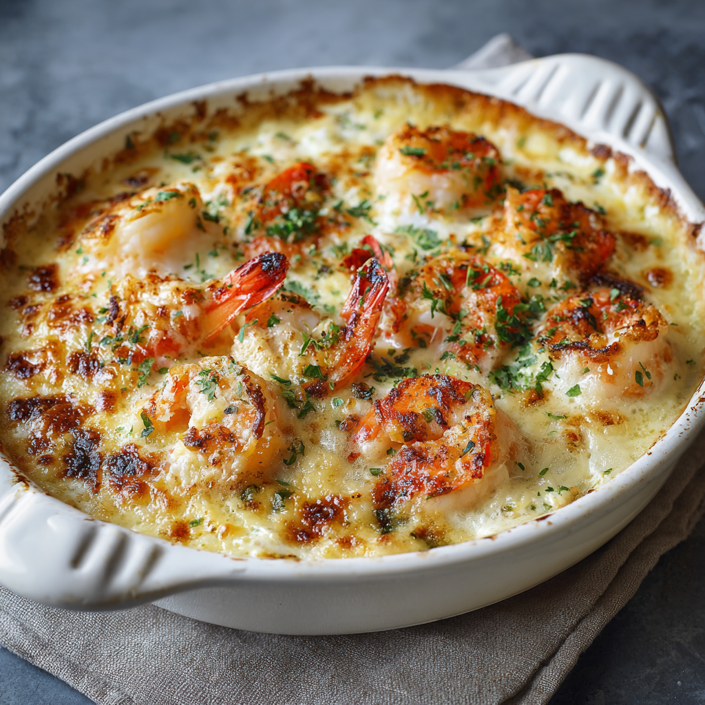 This Creamy Crab and Shrimp Gratin combines tender lump crab meat, juicy shrimp, and a velvety garlic cream sauce topped with golden, bubbling cheese. It’s elegant enough for special occasions yet simple enough for a cozy dinner at home.
