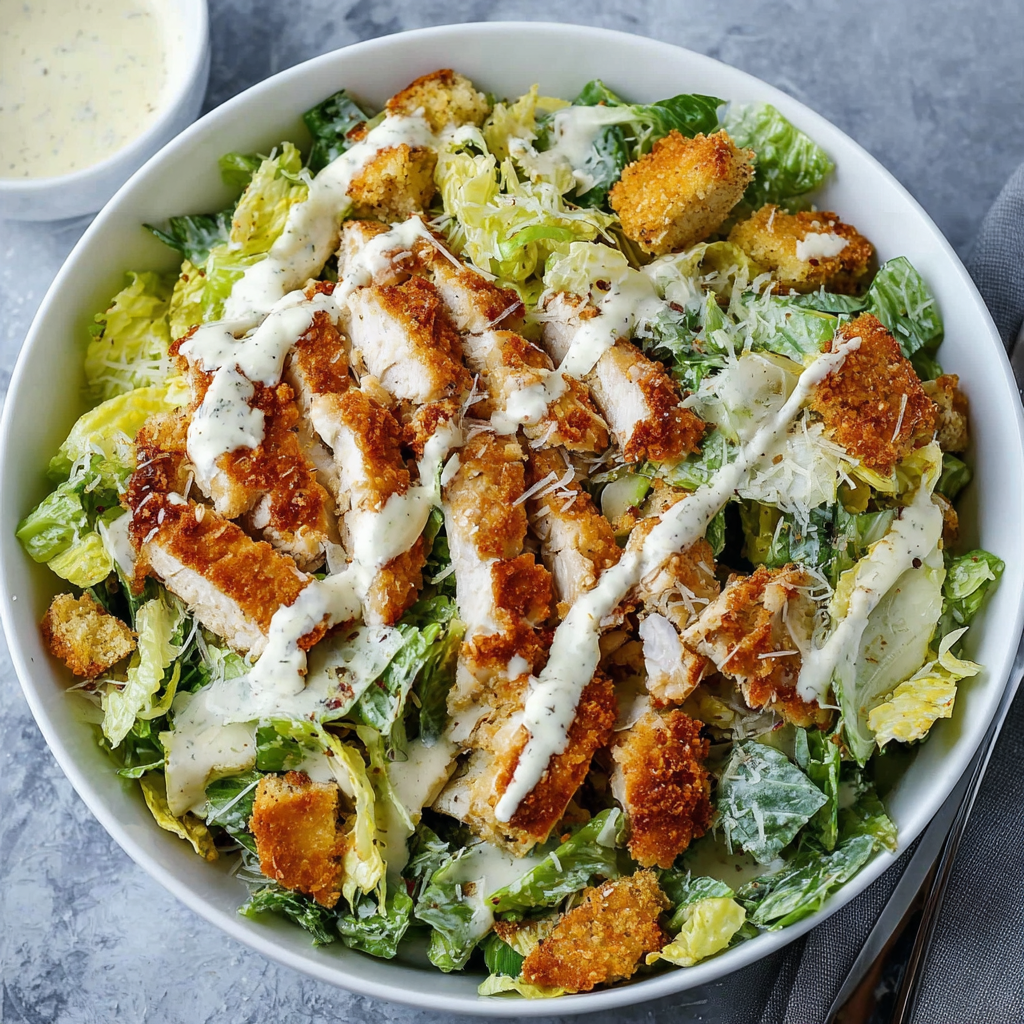 Crispy Chicken Caesar Salad – Crunchy, Creamy & Completely Addictive