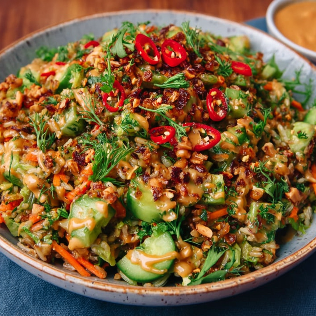 This Crispy Rice Salad with Peanut-Chili Dressing (Vegan + High-Protein) delivers bold flavor, satisfying crunch, and plant-based protein in every bite. It’s meal-prep friendly, customizable, and perfect for busy weeknights. Try it today, leave a comment with your twist, share your review, and subscribe for more vibrant recipes!