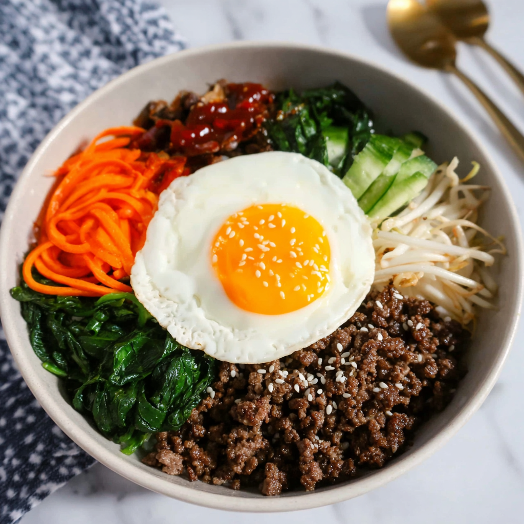 Easy Bibimbap with Ground Beef (or Korean Mixed Rice Bowl with Minced Beef) proves that healthy, “clean” eating can be incredibly flavorful. By utilizing ground beef and quick-sautéed vegetables, you can enjoy a complex Korean feast in under 30 minutes. Try this recipe tonight, leave a review in our comments, and subscribe for more global power-bowl guides!