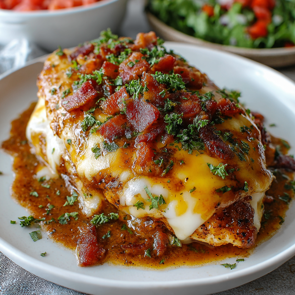 Juicy grilled or pan-seared chicken breasts are smothered in smoky BBQ sauce, topped with crispy bacon, and finished with perfectly melted cheese. The result? A bold, savory, crowd-pleasing dinner that tastes indulgent yet can be easily customized to fit your nutritional goals.