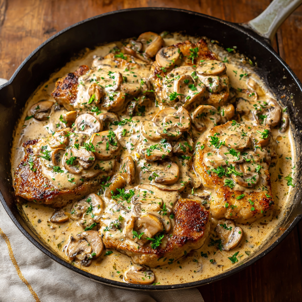 Easy Skillet Cream of Mushroom Pork Chops is a quick, creamy, and satisfying one-pan meal perfect for busy nights. With tender pork and rich mushroom sauce, it’s a comforting dish the whole family will love. Try it today, share your feedback, leave a comment, and subscribe for more easy recipes!