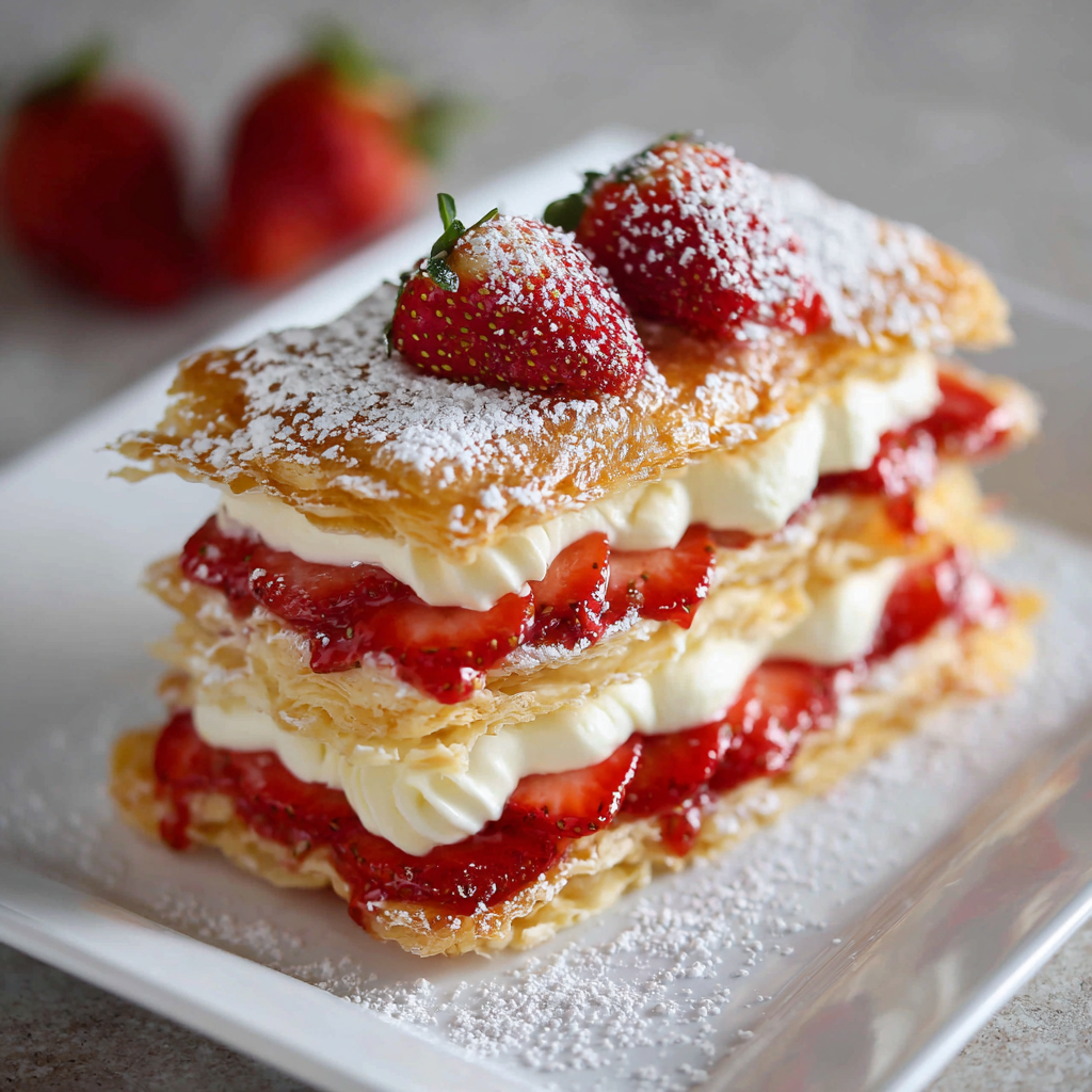 Easy Strawberry Napoleon: Layers of Puff Pastry, Cream & Fresh Strawberries