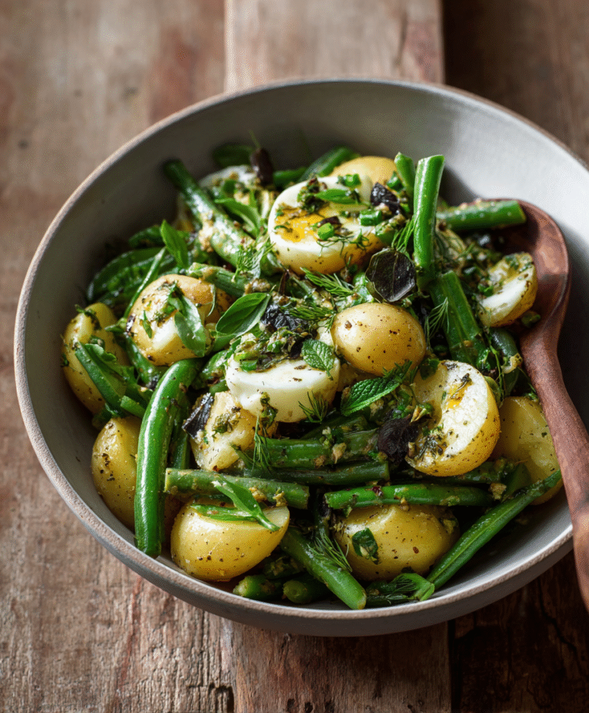French-Style Potato and Green Bean Salad is proof that simplicity is the ultimate sophistication. By stripping away the heavy mayonnaise and focusing on technique—specifically the hot dressing method—you create a side dish that is vibrant, healthy, and deeply flavorful. It is the picnic hero that won’t spoil and the dinner side that steals the show.