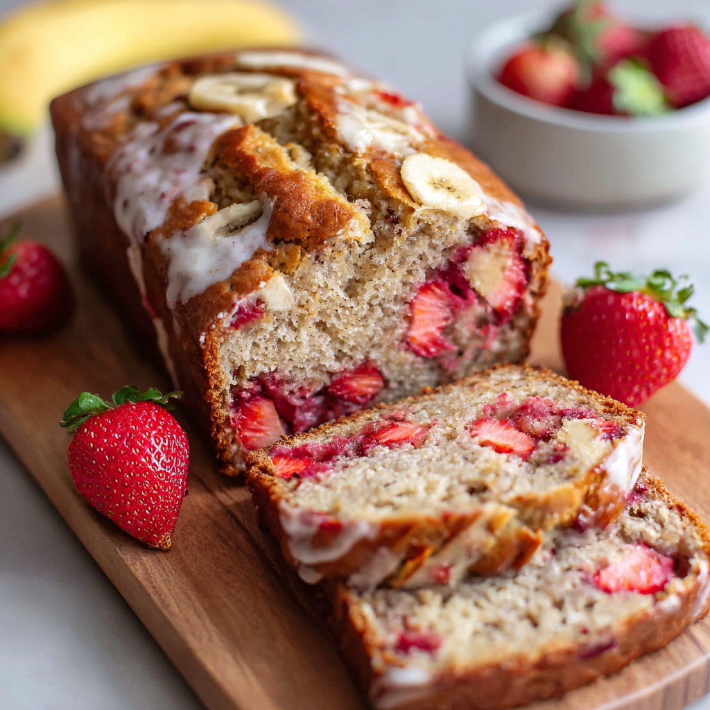 The Healthy Banana Strawberry Bread with Yogurt (or Strawberry-Banana Protein Loaf with Greek Yogurt Infusion) is the ultimate evidence that “healthy” and “indulgent” can coexist. By mastering the “Anti-Sink” fruit toss and the “Slow-Rise Bake,” you ensure a professional result every time. Try toasted slices with a smear of almond butter, let us know if you liked the cinnamon-strawberry pairing in the comments, and subscribe for more efficiency-gourmet guides!