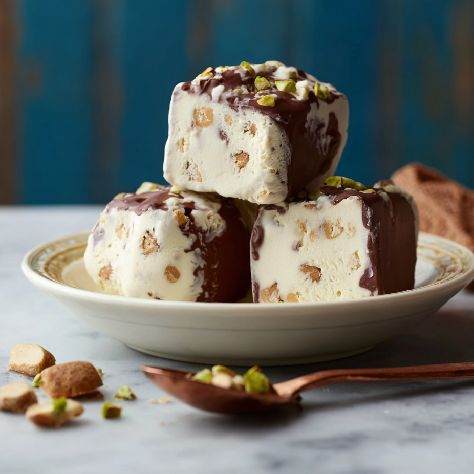 Can you capture the chewy, nutty essence of a French confection in a frozen, scoopable form? According to 2026 “Artisan-Creamery” standards, Homemade Nougat Ice Cream (known in English as Honey-Toasted Almond and Candied Fruit Frozen Custard) is the gold standard for sophisticated summer desserts. This recipe utilizes the “Suspension-Folding” technique—incorporating aerated honey and toasted nuts into a chilled cream base—resulting in a texture that remains soft and pliable even at sub-zero temperatures.