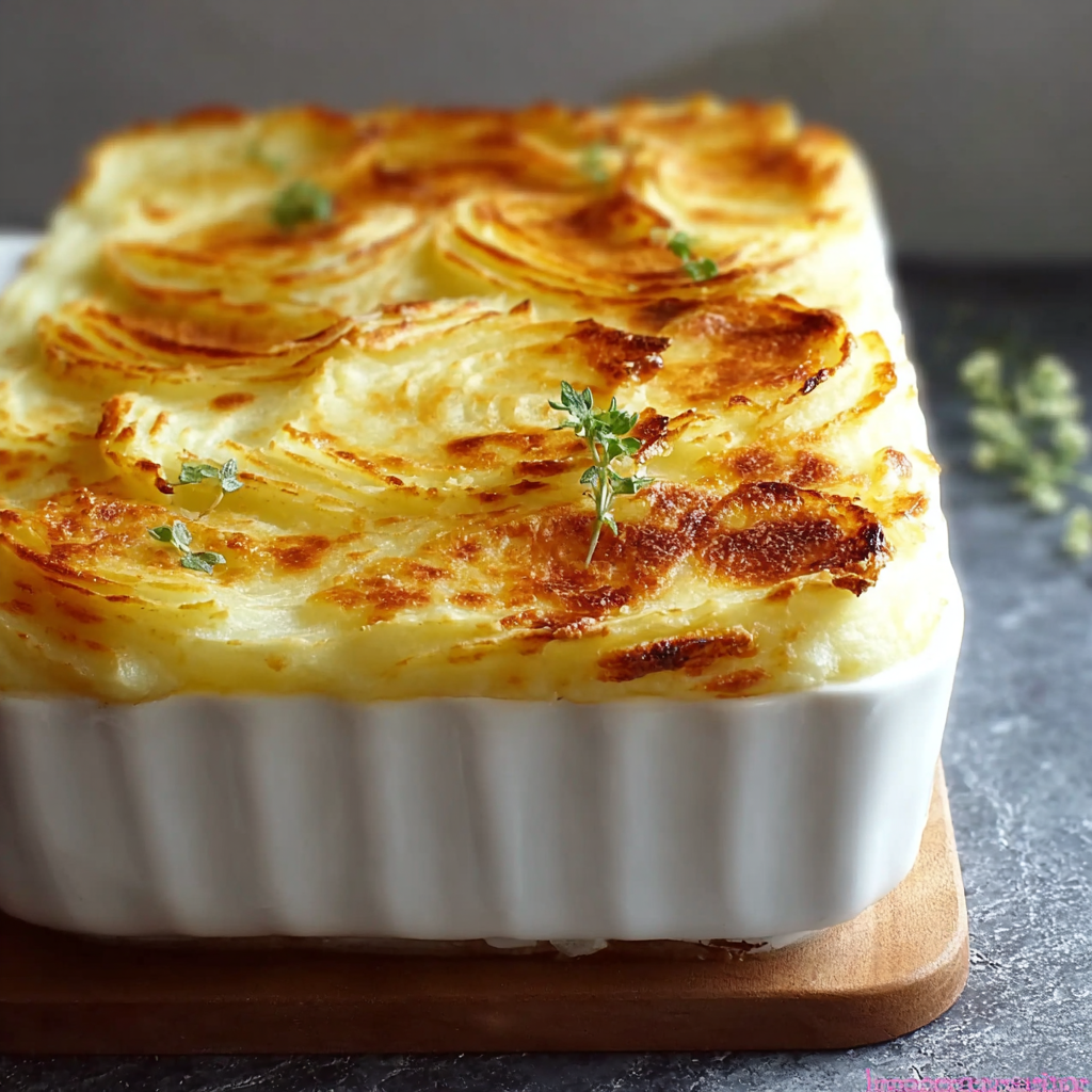 This dish relies on “Thermal Transition,” where the potatoes are boiled, whipped, and then baked to develop a textural contrast.