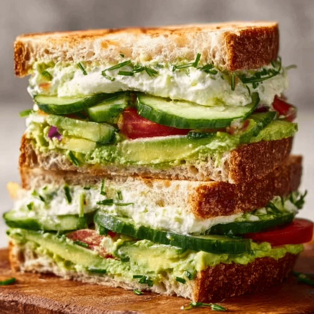 With buttery avocado, crisp cucumber, and flavorful spreads, this sandwich combines texture, nutrition, and vibrant flavors—all in a quick, easy-to-make meal.