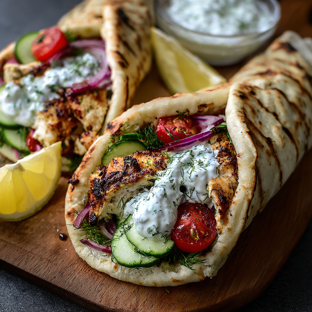 Juicy marinated chicken, warm pita, crisp veggies, and a rich, tangy feta tzatziki come together in a perfectly balanced wrap. It’s quick, customizable, and ideal for weeknight dinners or casual gatherings.