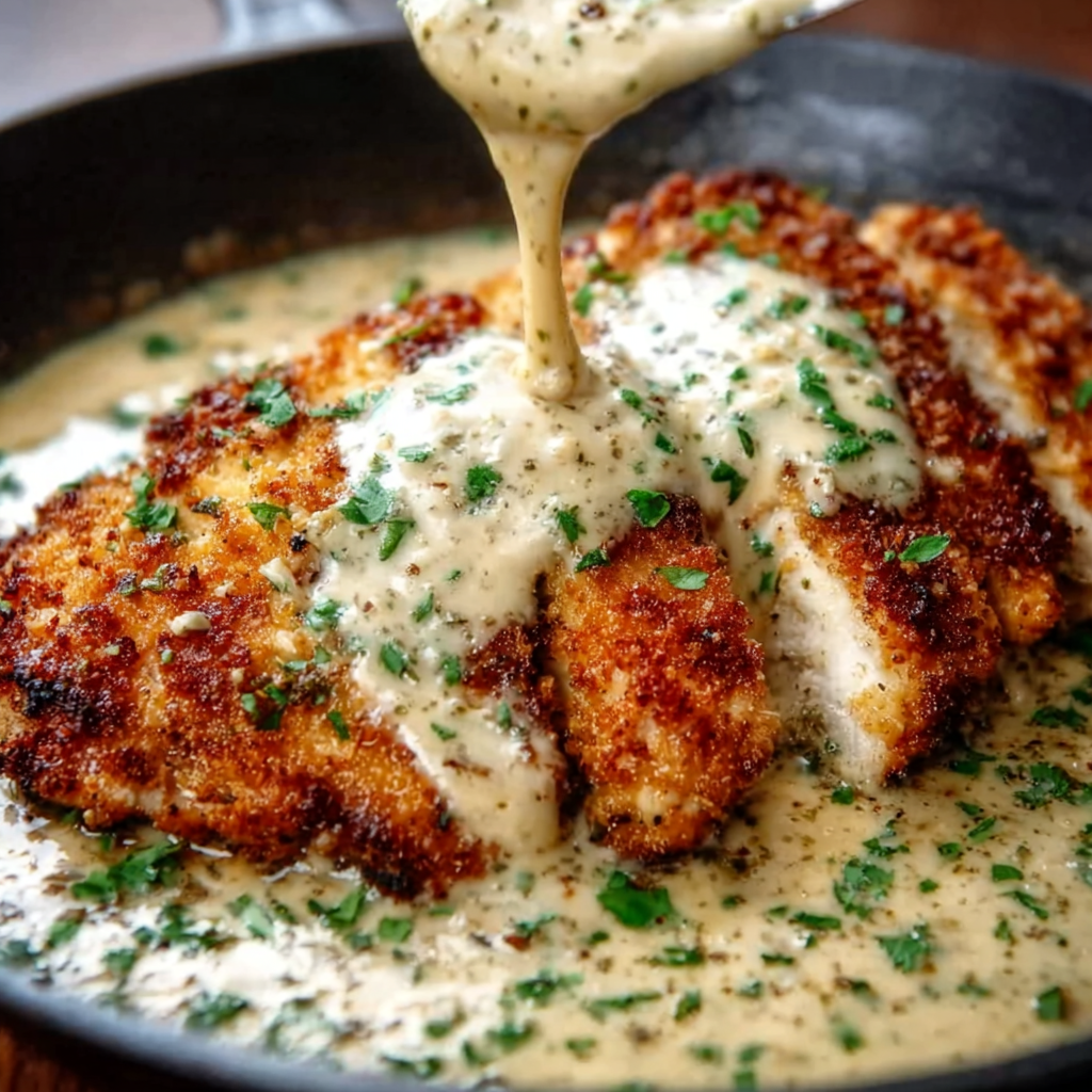 Parmesan Crusted Chicken with Creamy Garlic Sauce: Crispy, Juicy & Restaurant-Quality at Home