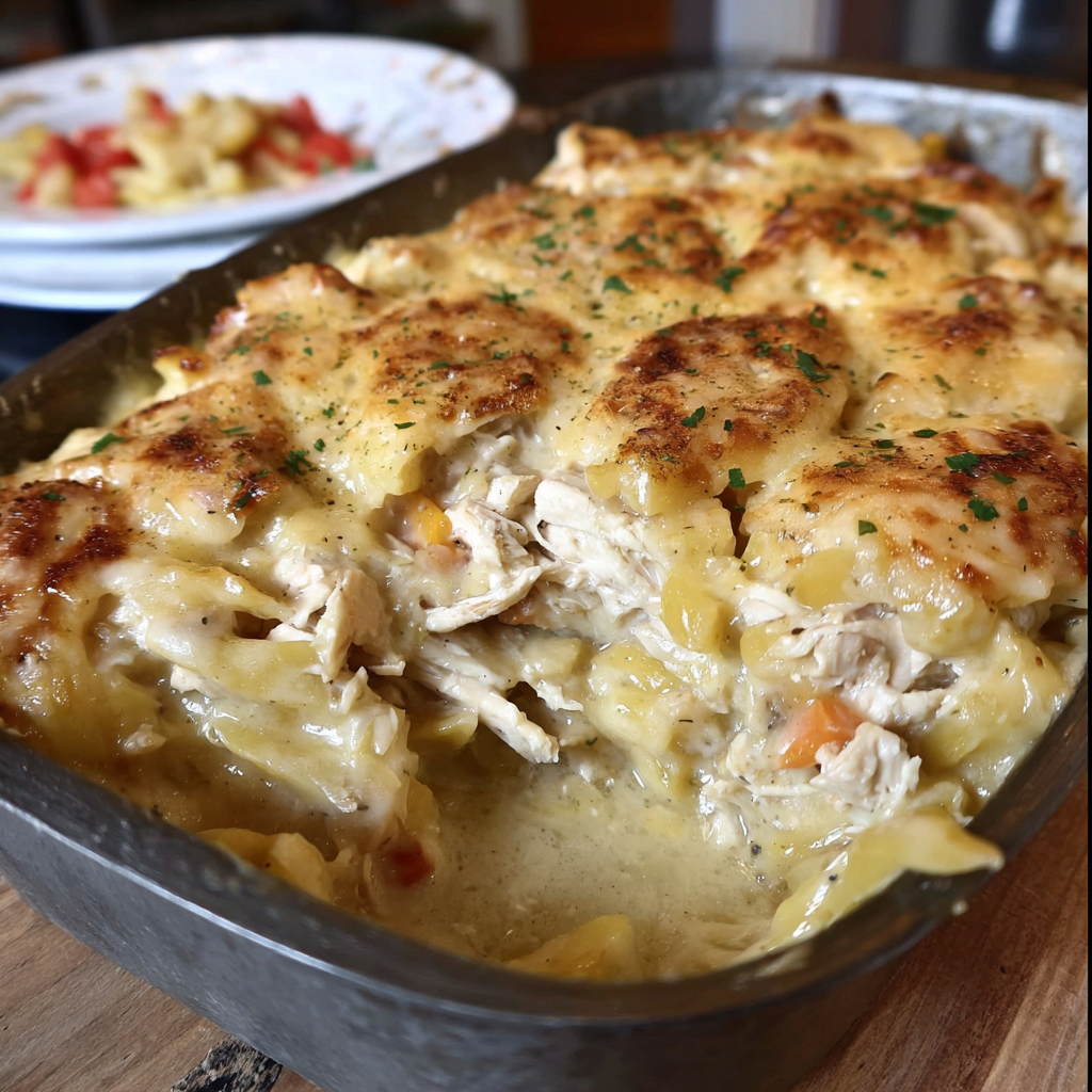 This chicken casserole is the ultimate comfort food—tender shredded chicken baked in a creamy, cheesy sauce with a buttery, golden topping. It’s easy to prepare, perfect for busy weeknights, and guaranteed to satisfy a crowd.