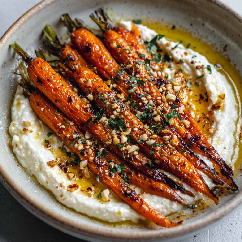 Perfect for dinner parties, holiday feasts, or simply elevating weeknight meals, this dish combines caramelized roasted carrots, fluffy whipped ricotta, and a drizzle of spicy-sweet hot honey for an unforgettable flavor experience.