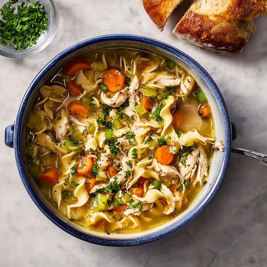 The Rotisserie Chicken Noodle Soup (or Quick Shredded Chicken Soup) is a testament to the power of a few high-quality shortcuts. It provides the warmth and healing of a traditional soup in the time it takes to watch a sitcom. Would you like me to generate a “Freezer Meal” guide for prepping this soup base in advance for the next flu season?