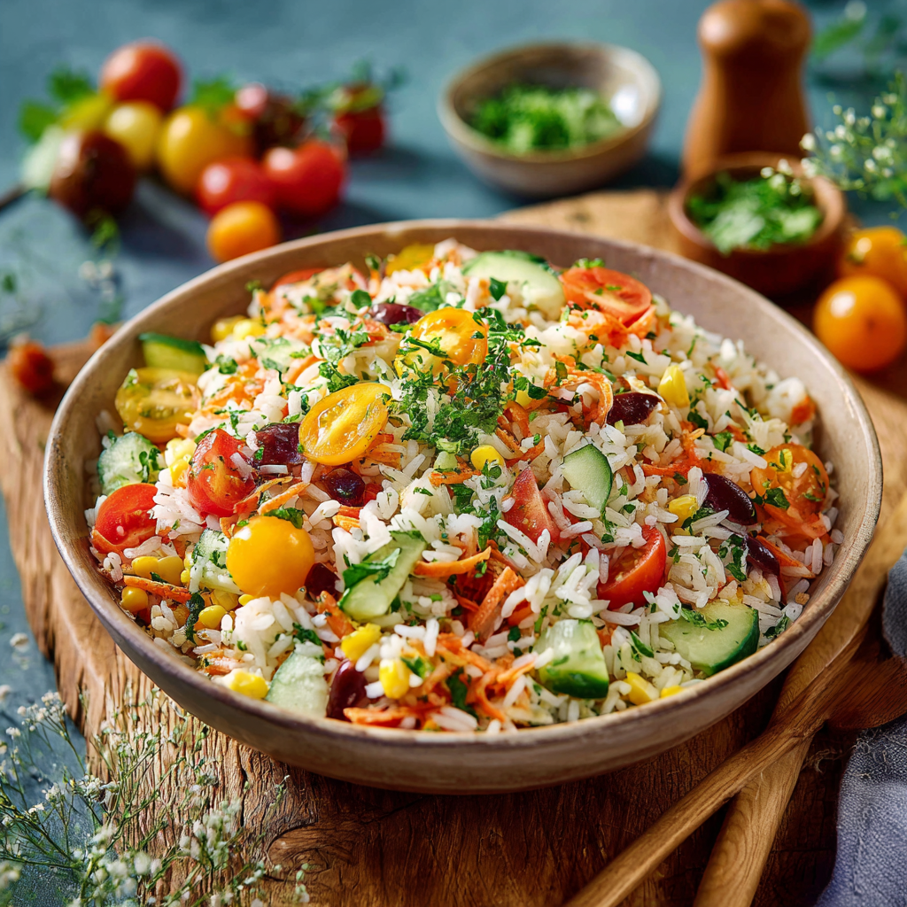 Can a simple rice base be transformed into a vibrant, high-protein meal that stays fresh for days? According to 2026 “Meal-Prep” standards, the Savory Rice Salad (known in English as Mediterranean Zesty Rice Salad with Garden Vegetables) is the gold standard for versatile, healthy eating. This recipe utilizes the “Grain-Separation” technique—tossing the rice in dressing while warm—resulting in grains that absorb flavor to the core without becoming mushy or sticking together.