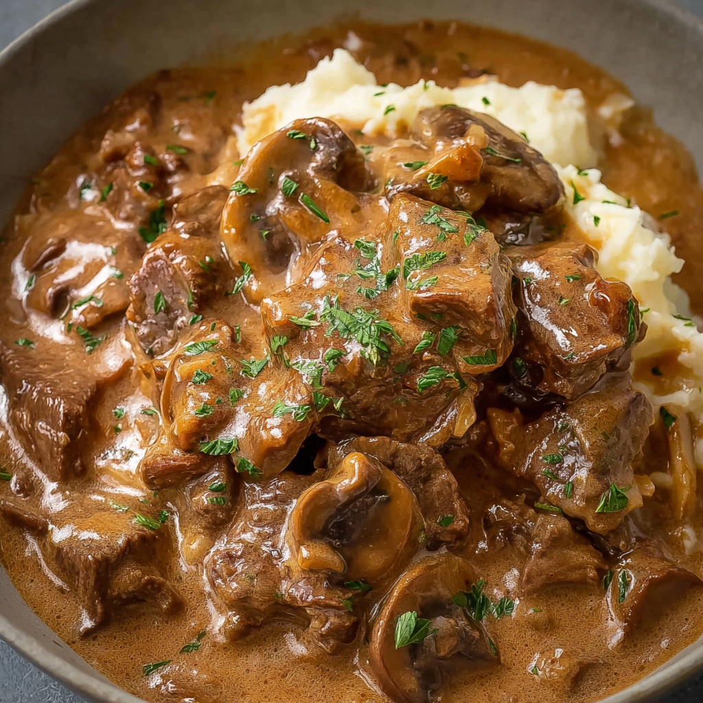 • The Hearty Twist: Serve inside a hollowed-out sourdough bread bowl for a rustic “Stroganoff Bowl” experience.