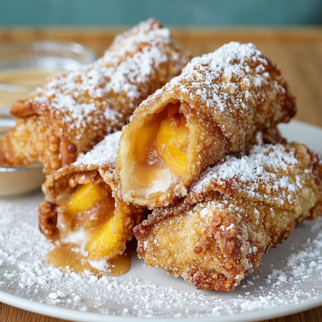 That’s exactly why Southern Peach Cobbler Egg Rolls work so well. The egg roll wrapper acts like a thin pastry shell, creating contrast between crispy outside and soft cinnamon-peach filling inside. The format is portable, party-friendly, and perfect for dipping in vanilla glaze or ice cream.