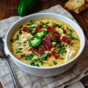 This soup blends tender shredded chicken, creamy cheese, smoky bacon, and the signature heat of jalapeños into one irresistible dish. It’s perfect for cold nights, cozy dinners, or when you’re craving something indulgent yet easy to make.