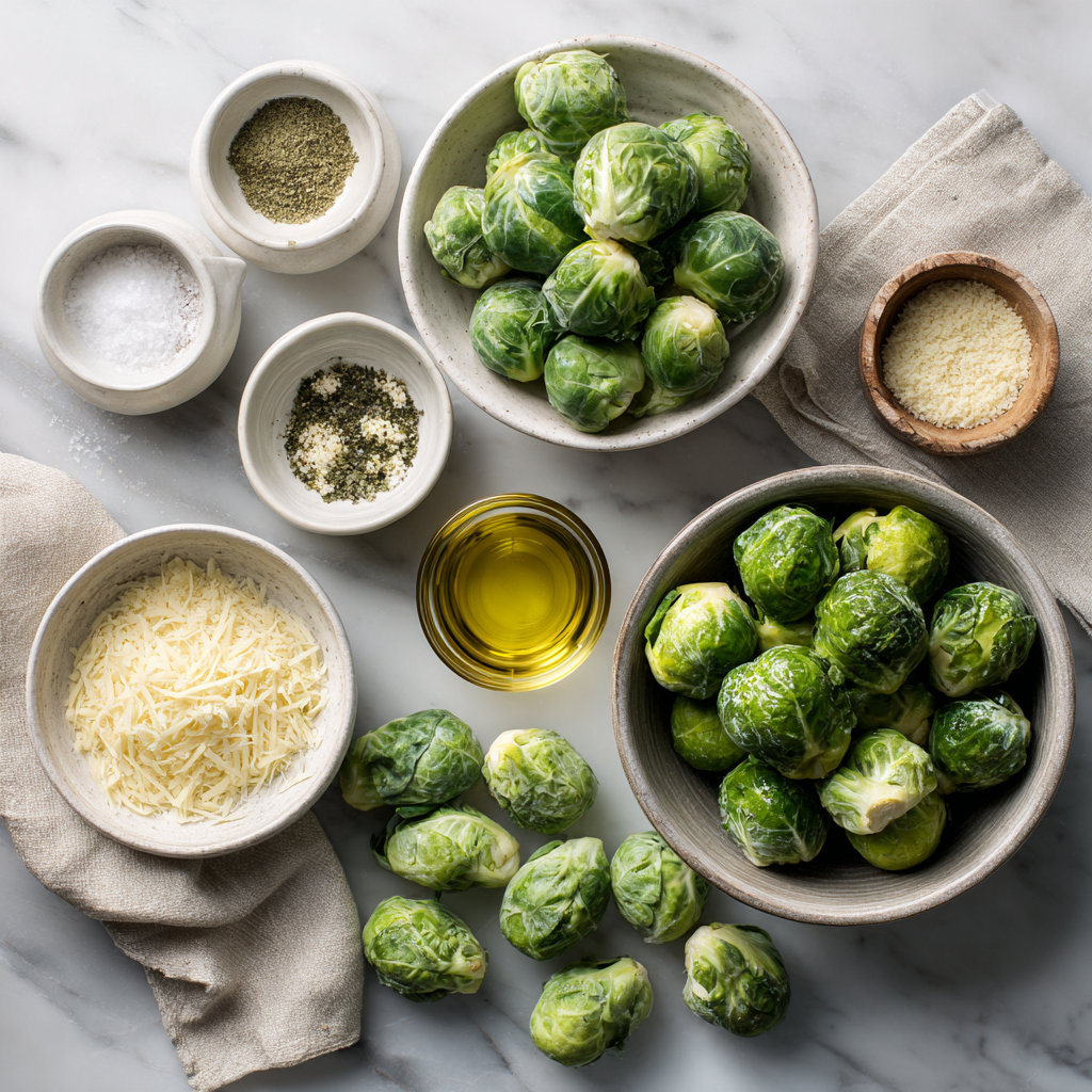 - 1.5 lbs (700g) Fresh Brussels Sprouts: Look for bright green heads with tightly packed leaves. Avoid yellowing leaves or sprouts that feel “spongy” when squeezed.
